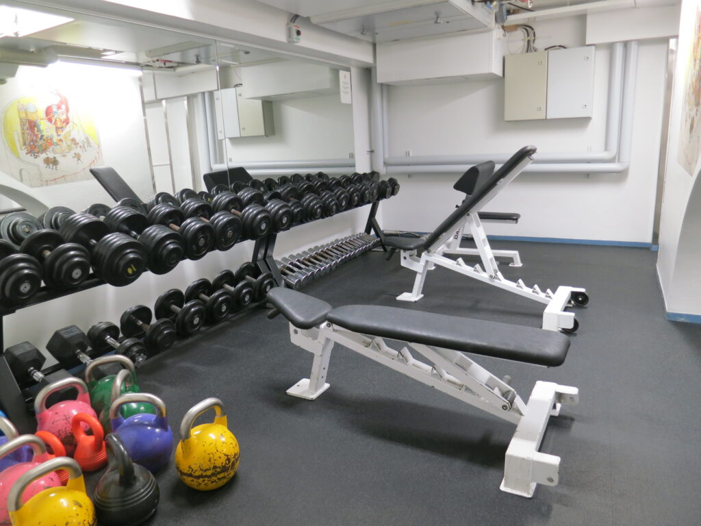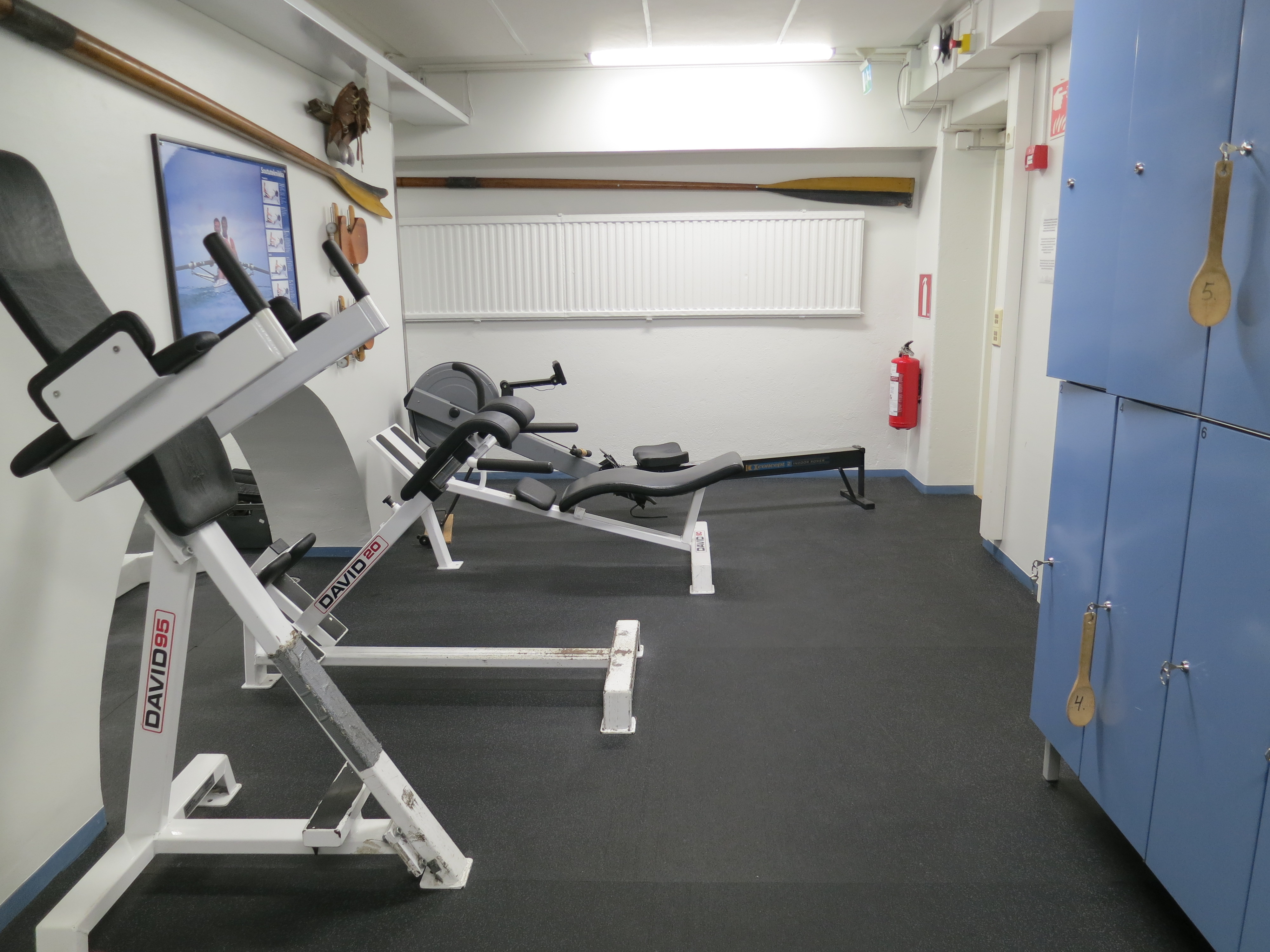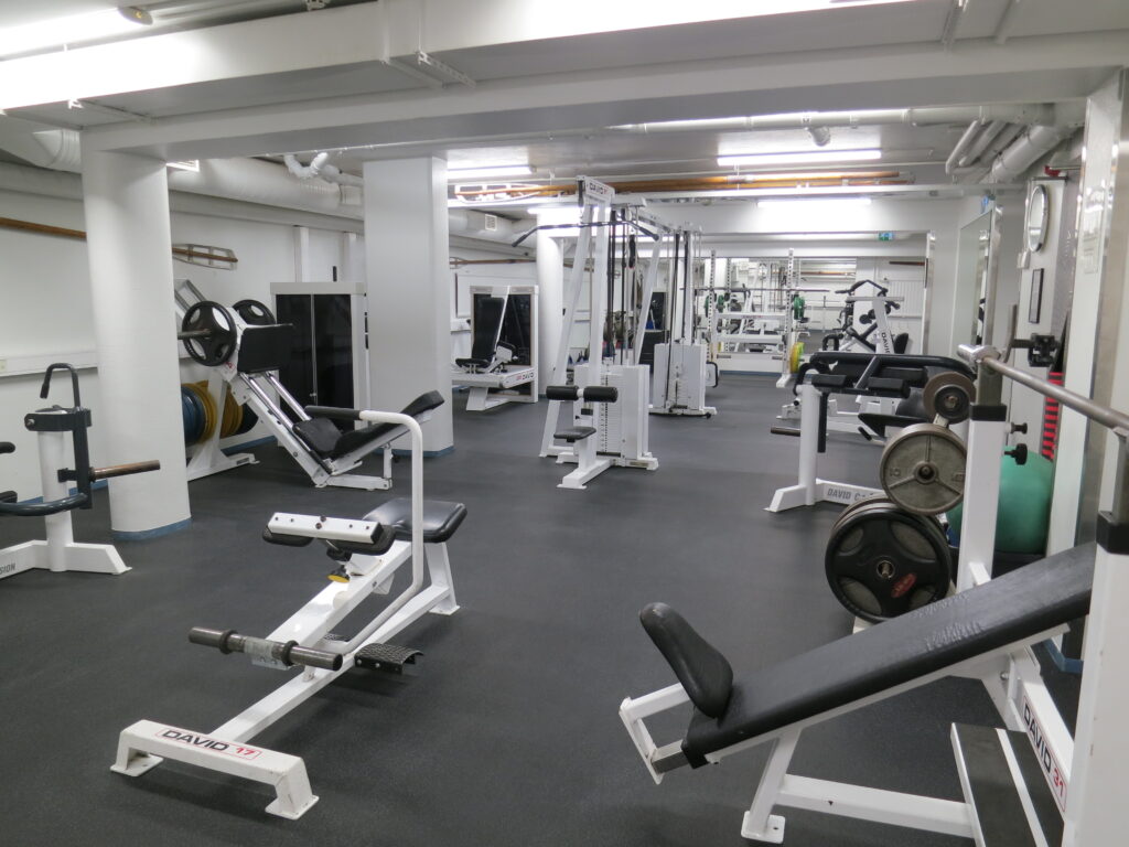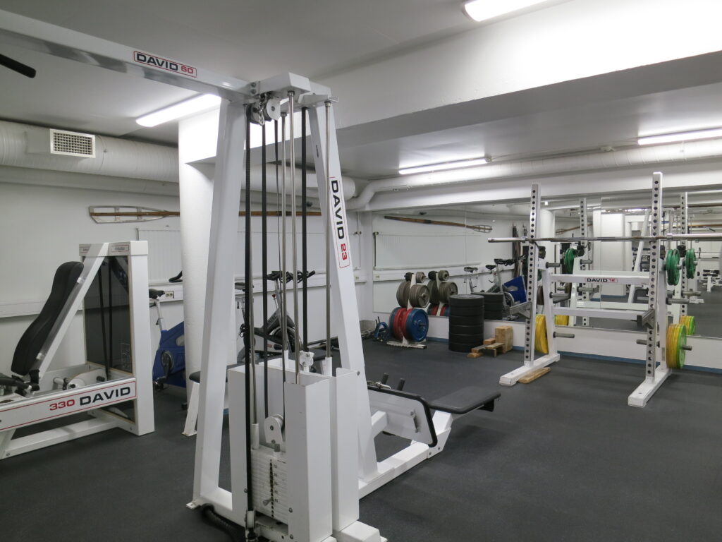 Beskrivning av gymmet: I den före detta inomhusroddbassängen finns ett gym som lämpar sig för träning, exempelvis med fria vikter. Roddis lämpar sig särskilt för styrke- och fitnessträning.